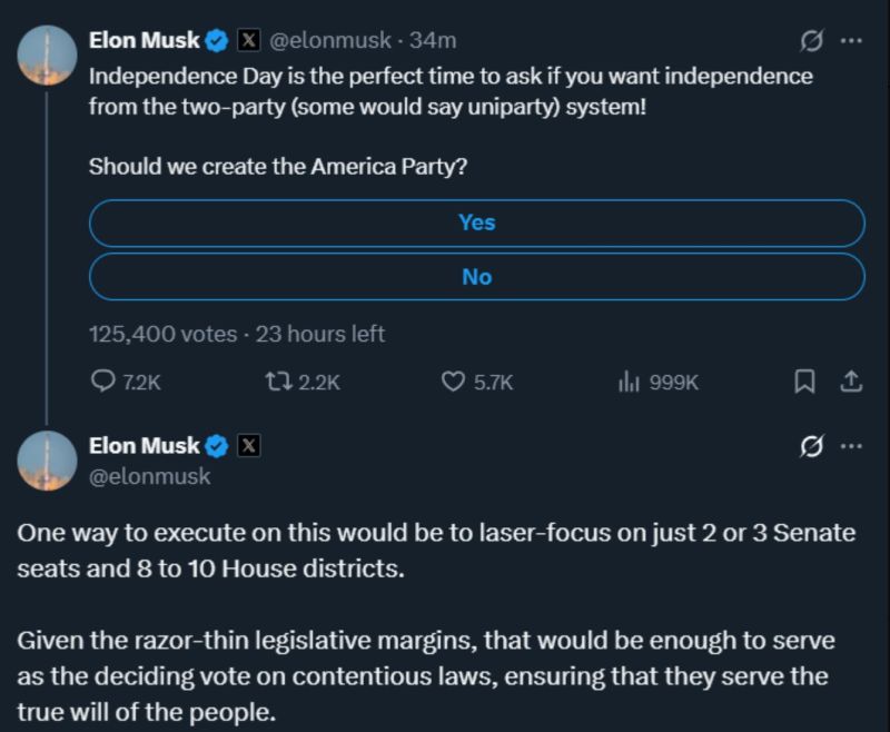 😨 ELON FLOATS BLUEPRINT FOR A NEW "AMERICA PARTY” POWER PLAY