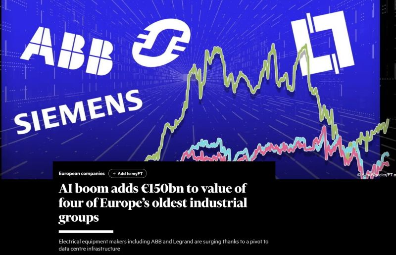 European makers of everything from switches to smart meters are providing the servers and infrastructure that power data centres for large language models and cloud computing, with traditional makers of electric equipment such as Legrand doubling their revenues thanks to data centres in recent years. Link to article 👉 https://lnkd.in/d8wsidBb Source: FT