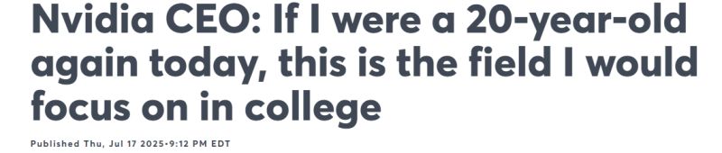 NVIDIA CEO: “I’D STUDY PHYSICS, NOT SOFTWARE” IF I WERE 20 TODAY Jensen says if he were graduating college in 2025, he’d skip coding bootcamps and major in physical sciences like physics or chemistry.