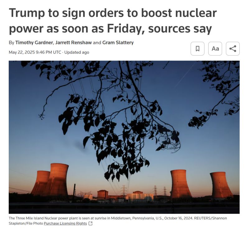 📢 President Trump is expected to invoke the wartime Defense Production Act over US dependence on Russia and China for enriched uranium and nuclear fuel processing