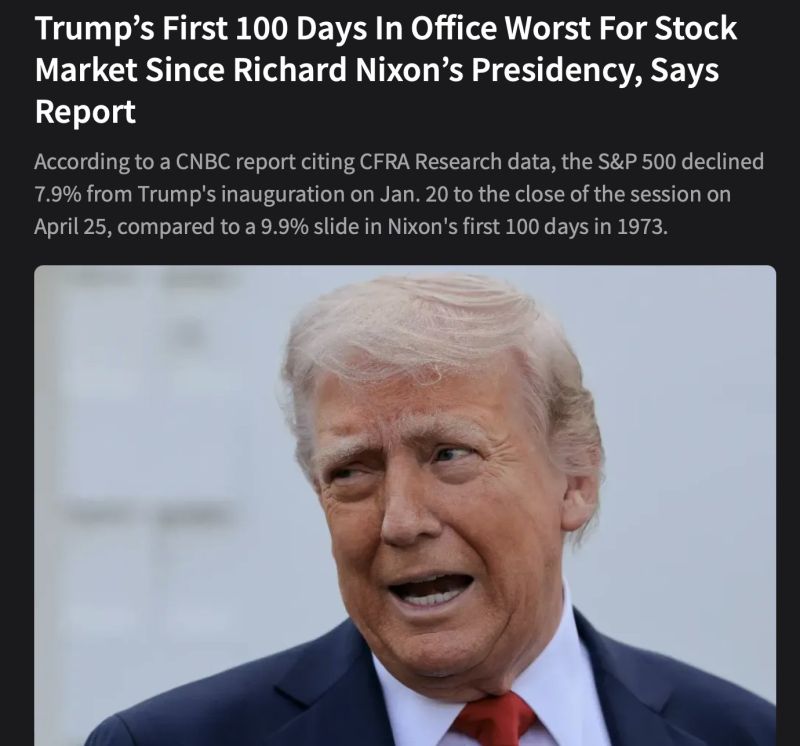 President Trump’s first 100 days in office is the worst for the stock market since Richard Nixon’s presidency...