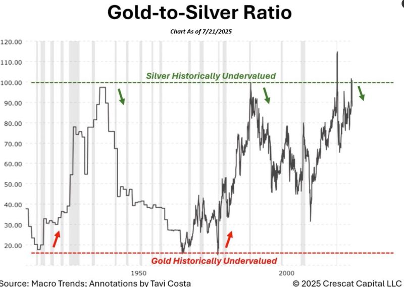 The gold-to-silver ratio is starting to move abruptly, as it often does after reaching extremely elevated levels.