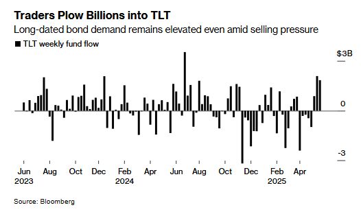 "The best answer we have for the largest % move in 10 years is (simply) positioning, and that we’ve rallied for 9 consecutive weeks. The ease of trading an ETF for quick exposure has been on full display; as of [Tuesday's] close $GLD accounted for 8% of all notional US-listed ETF volumes, its largest share of activity in our dataset. Flows on the ETF desks skewed (unsurprisingly) strongly better for sale today". Source: Neil Sethi
