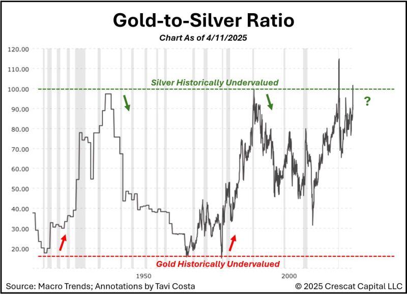 The gold-to-silver ratio is starting to move abruptly, as it often does after reaching extremely elevated levels.