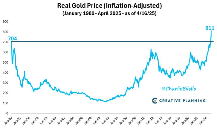 A fascinating chart by Otavio (Tavi) Costa Gold relative performance dynamic follows very long-term cycles, and we’re likely only in the early stages of this one. As Tavi points out, we now face a trifecta of macro imbalances: ▪️The Debt Problem of the 1940s ▪️Inflation Issues of the 1970s ▪️Asset Valuation Imbalance of the Late 1920s and 1990s Source: Bloomberg, Crescat Capital