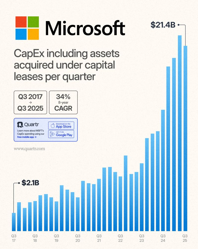 Microsoft $MSFT CapEx increased with 53% y/y in Q3'25