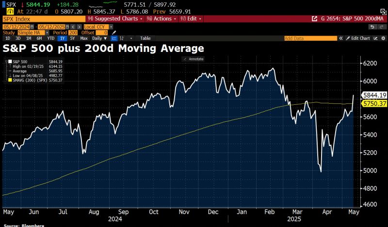 The S&P 500 just sprinted through 200-day moving average as Wall Street cheers the rollback of tariffs.