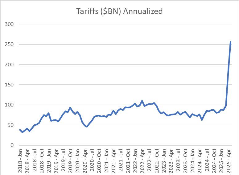 The US is now collecting ~$255 Billion in annualized revenue from Trump’s tariffs
