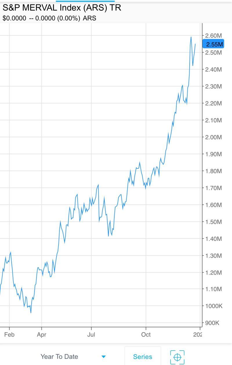 Top stock market of the year: Argentina’s index up 163% this year, outperforming the world