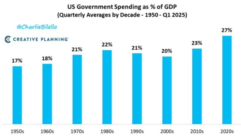 1950s: 17% 1960s: 18% 1970s: 21% 1980s: 22% 1990s: 21% 2000s: 20% 2010s: 23% 2020s: 27% Source: Charlie Bilello