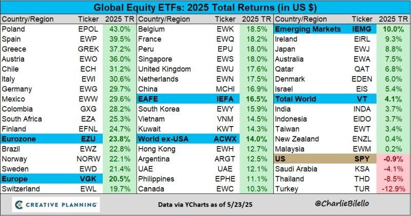 🚨We've seen a HUGE reversion to the mean so far this year with Eurozone stocks UP 24% and International stocks overall are UP 14% while the S&P 500 is DOWN 1%.