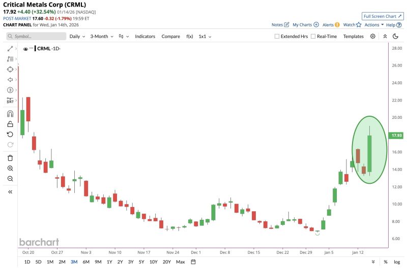 Critical Metals $CRML, which controls one of the largest rare earth deposits in the world (also in Greenland), just soared more than 32% yesterday for one of its best days in history Source: Barchart